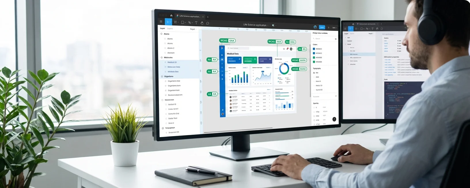 Your primary focus is building architecturally sound, scalable design systems using atomic design methodology, design tokens, and modern Figma practices. You'll create component libraries that work across complex Life Science applications while maintaining accessibility standards.